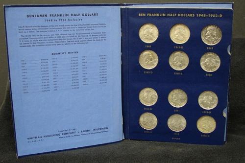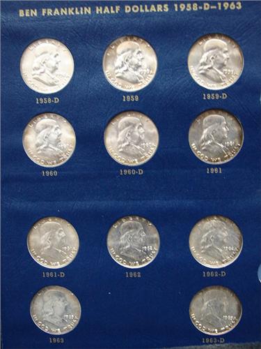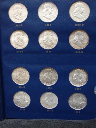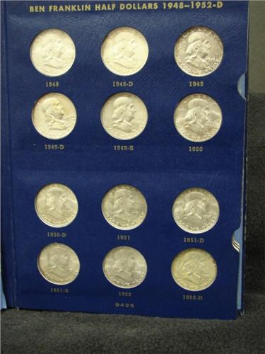 COMPLETE SET OF FRANKLIN HALF DOLLARS. Unc. In Whitman blue coin album. 35 total coins.