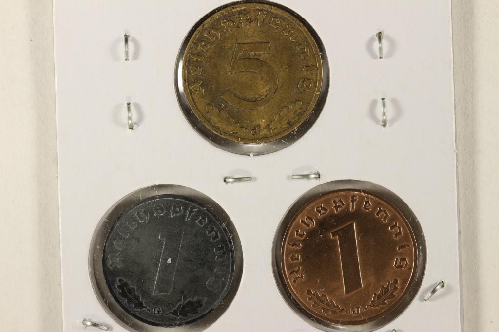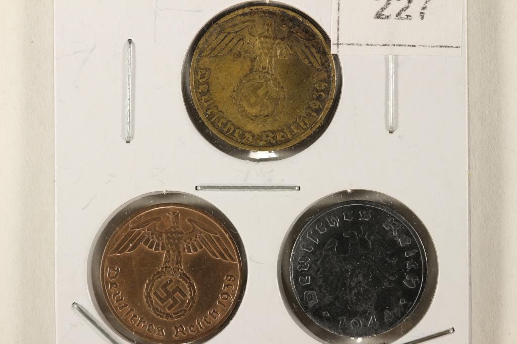 COPPER 1 PFENNIG AND 1944 ZINC 1 PFENNIG ALL WITH SWASTIKAS