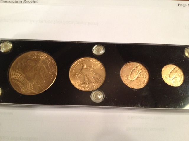 SET OF GOLD COINS- 1910 $20 ST GAUDENS, 1908 $10 INDIAN , 1915 $5 INDIAN, 1927 $2 1/2 INDIAN
