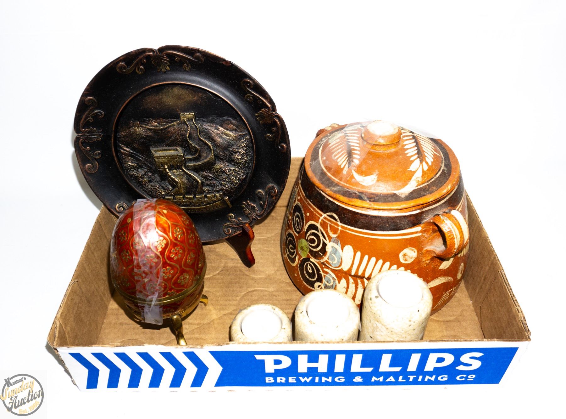 WITH NEW CANDLES + LIDDED HANDMADE POTTERY + SOLID BRASS EGG RED ENAMEL PAINTED WITH SOLID BRASS EGG STAND HOLDER **ALL ITEMS MUST BE REMOVED BY 5PM SATURDAY, AUGUST 2ND 2025. ALL REMAINING ITEMS WILL BE SUBJECT TO A $6.00 PER DAY STORAGE CHARGE. ANY ITEMS REMAINING AFTER MONDAY, AUGUST 18TH 2025 WILL BE CONSIDERED FORFEITED. NO REFUNDS WILL BE ISSUED FOR FORFEITED ITEMS. TO SCHEDULE A PICK UP APPOINTMENT CLICK HERE