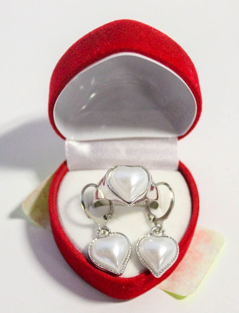 SET OF HEART SHAPED RING SZ8 AND EARRING