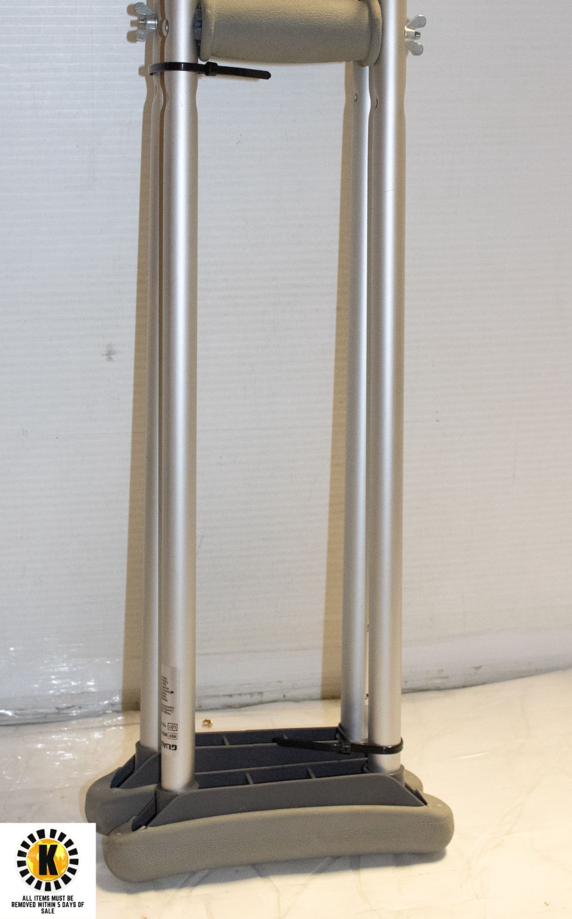 ADJUSTABLE HEIGHTS, FOAM RUBBER ON HAND HOLDS AND ON UNDERARM