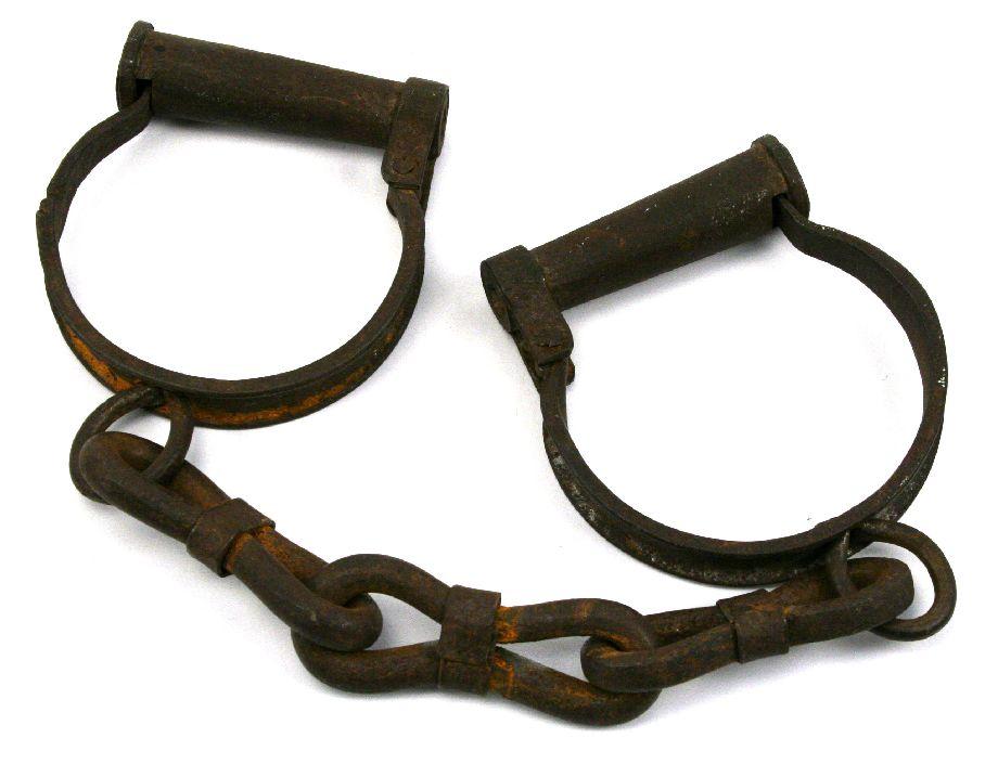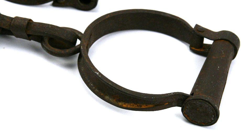 Pair of mid 19th Century iron prisoners shackles. No key. Overall good condition.