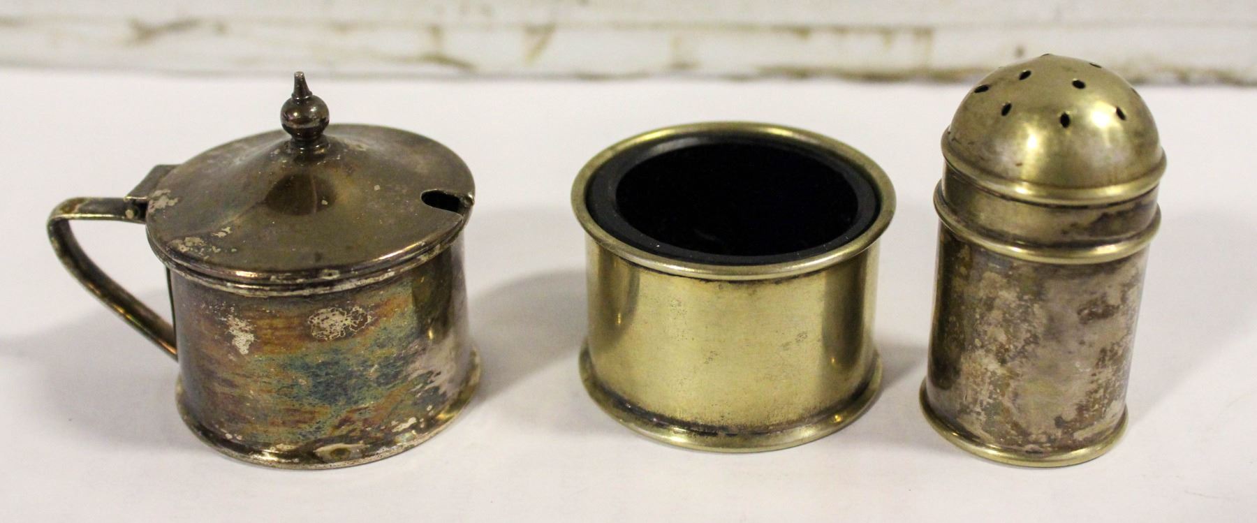 SET OF OLD SILVER PLATED SALT, PEPPER DISHES ETC