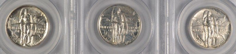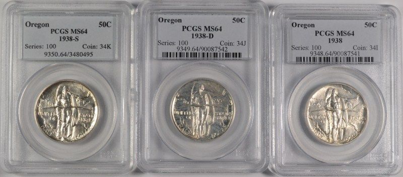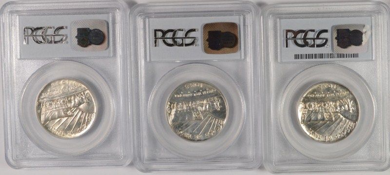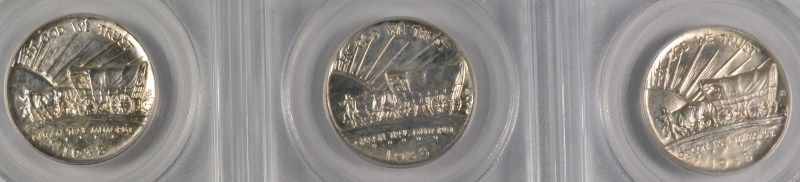 SET OF (P, D, S) OREGON TRAIL COMMEN HALF DOLLARS PCGS MS-64