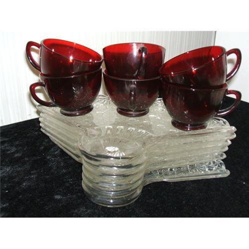 Awonderful set of sandwich plates with cups, the cups are ruby red, all in excellent shape, no chips or cracks,