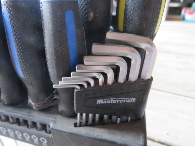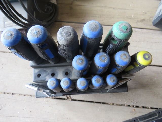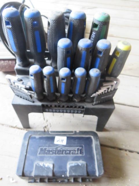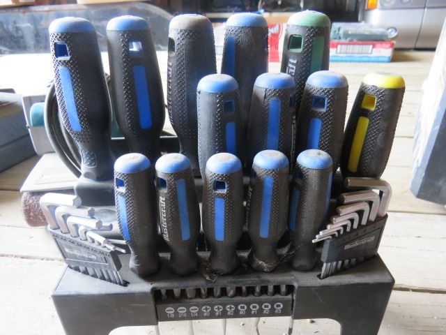 SET OF SCREWDRIVERS, ALLEN WRENCHES AND A BIT SET