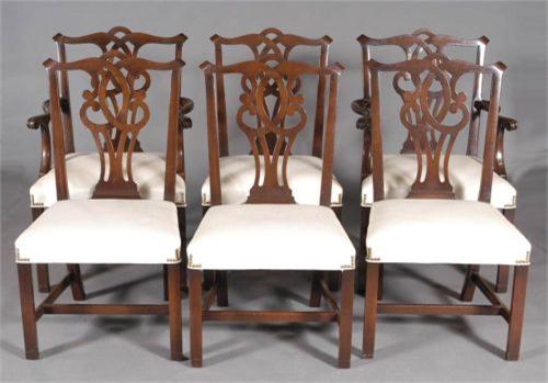 SET OF SIX CHIPPENDALE STYLE CHAIRS attributed to Kittinger, 38" high,
