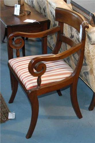 SET OF SIX MAHOGANY SABER LEG DINING CHAIRS including one armchair 19th century