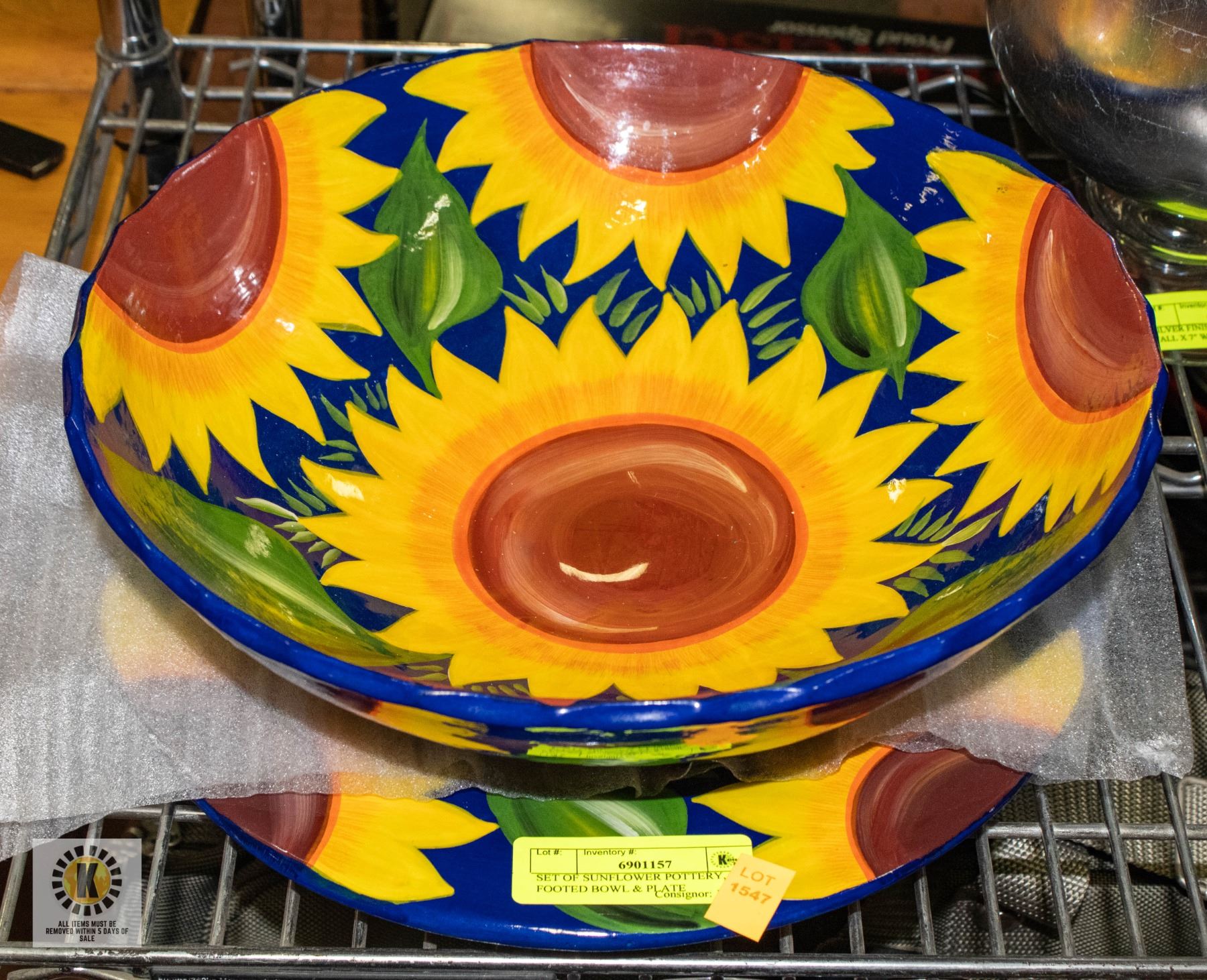 SET OF SUNFLOWER POTTERY, FOOTED BOWL & PLATE