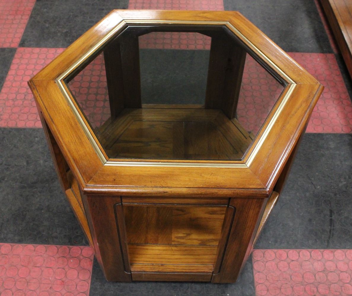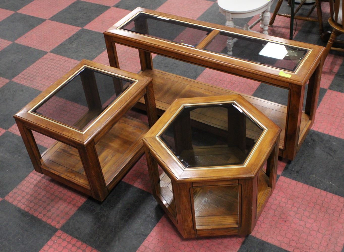 INCLUDES HALLWAY GLASS TOP TABLE: 26" X 53" X 16" SQUARE GLASS TOP TABLE: 21" X 22" X 25.5" HEXAGON GLASS TOP TABLE: 21" X 28" X 24"