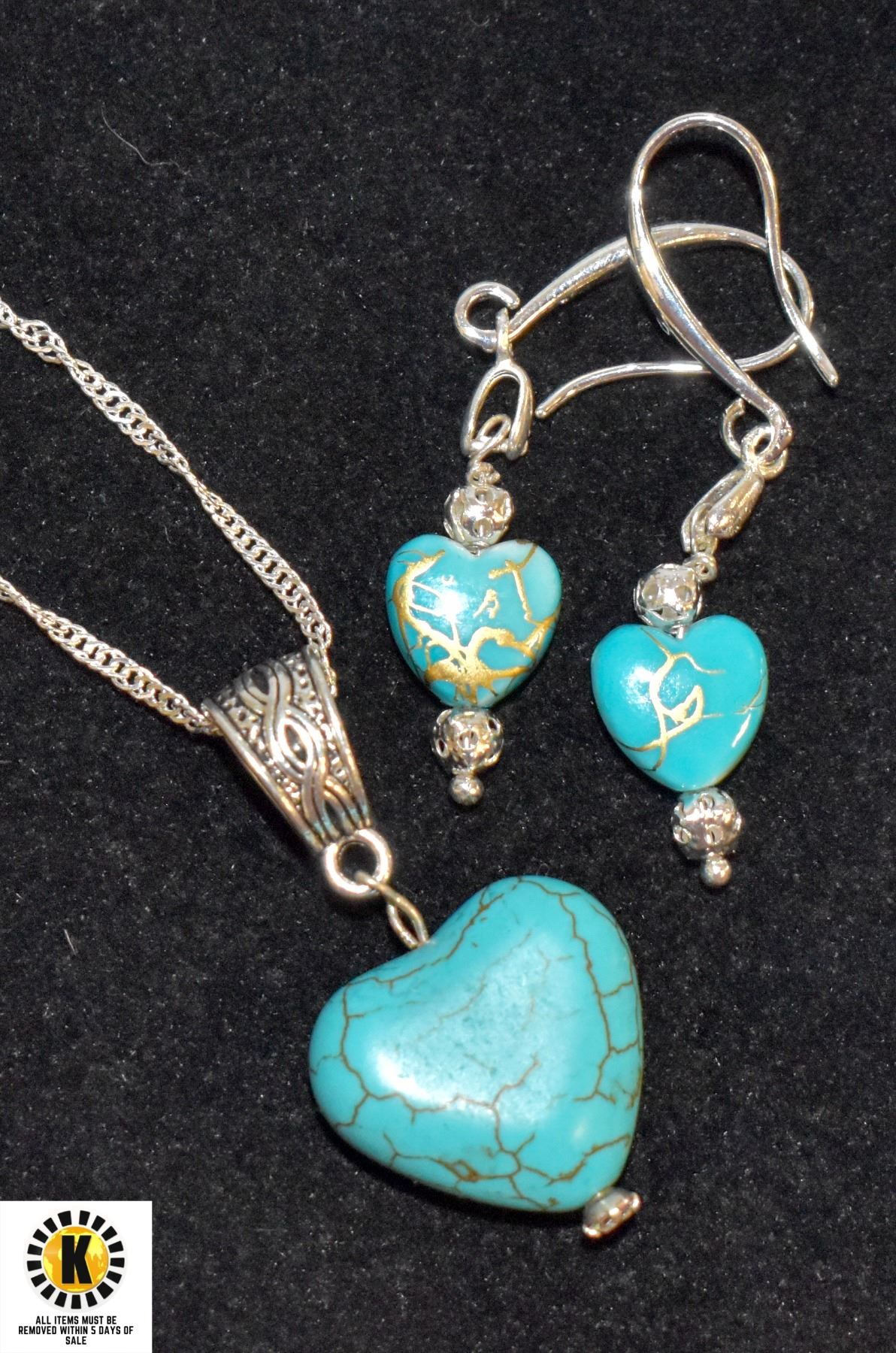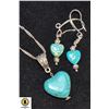 DROP EARRRINGS ON FISH HOOKS AND MATCHING PENDANT ON 18" WAVE CHAIN. JEWELLERY