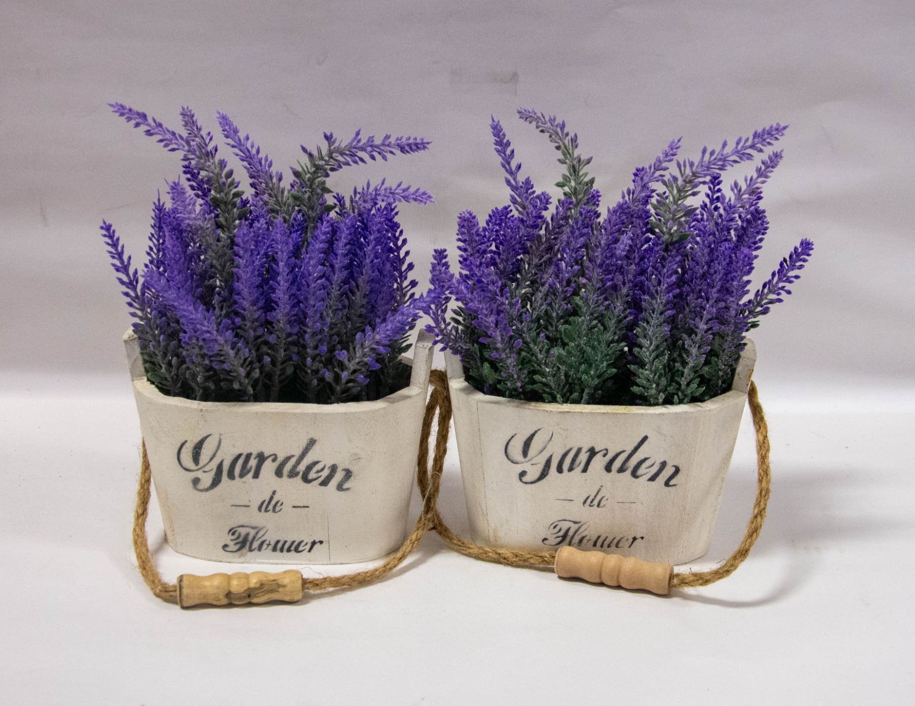 SET OF TWO ARTIFICIAL LAVENDERS IN WOODEN POTS