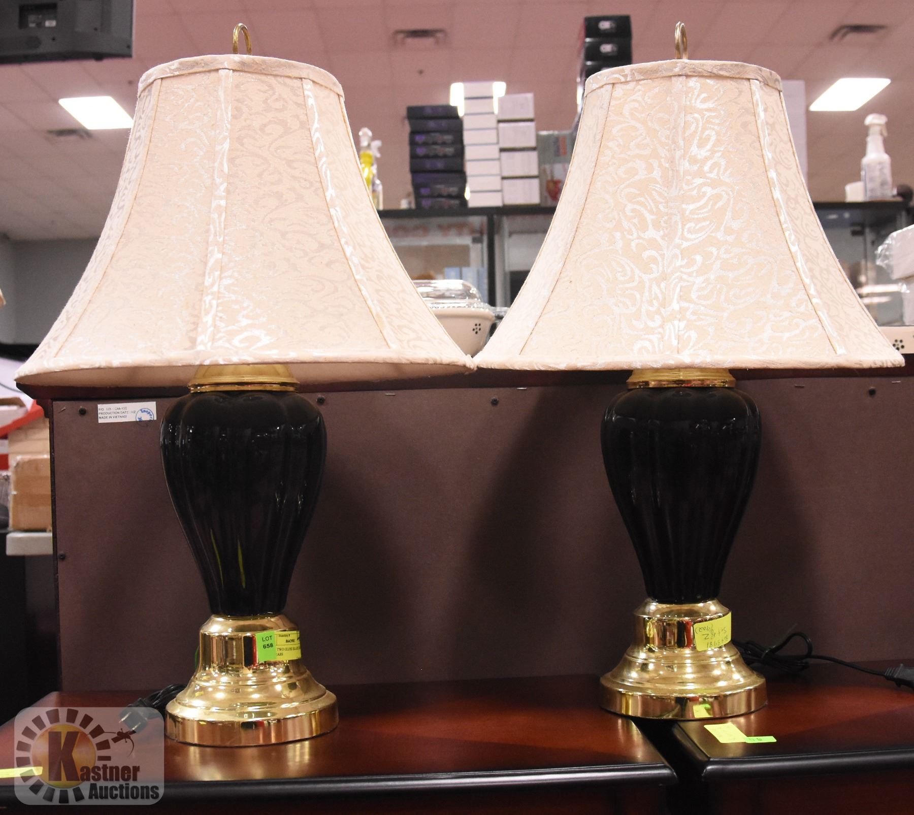 TRI-LIGHT TABLE LAMPS WITH DECORATIVE SHADES (25"-TALL X 16"-DIAM SHADES)