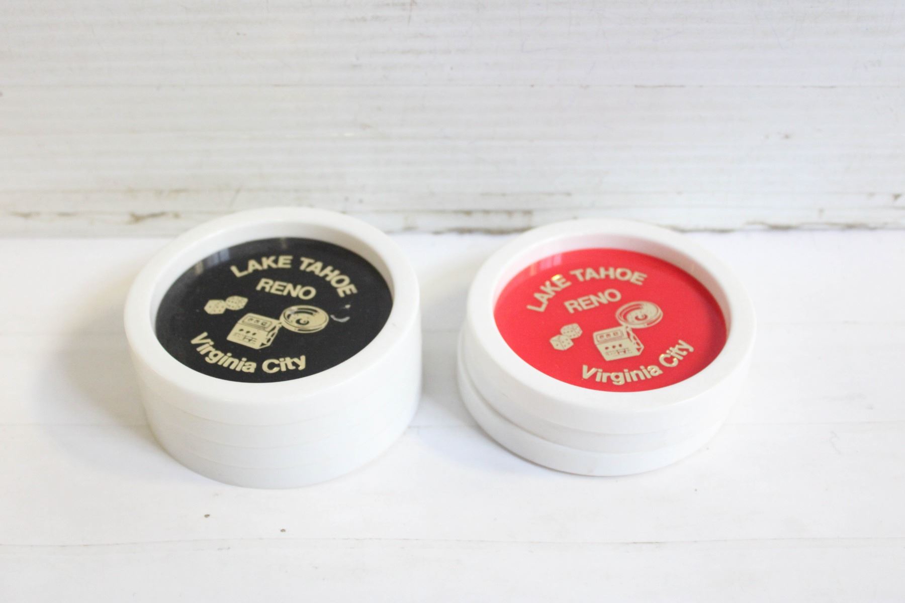 SET OF VINTAGE CASINO THEMED PLASTIC COASTERS
