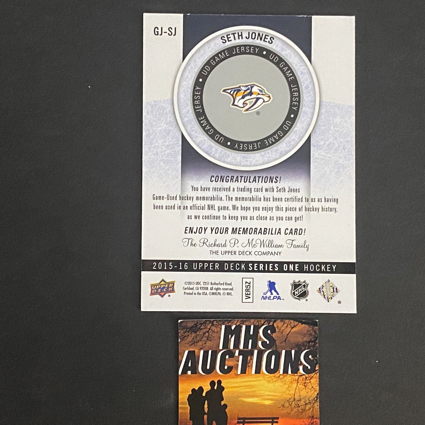 SETH JONES 2015-16 UPPER DECK SERIES 1 PREDATORS JERSEY CARD