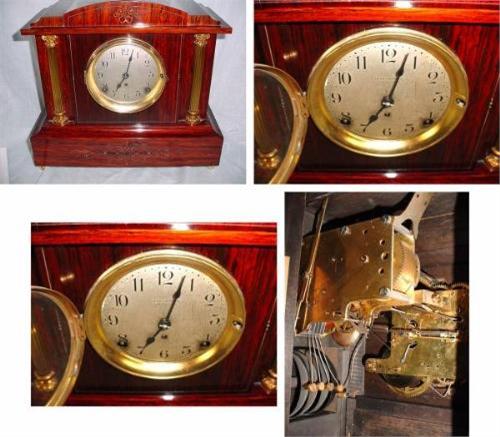 SETH THOMAS SONORA CHINE 4 BELL RED MAHOGANY ADAMANTINE; GOOD SHAPE; 1910. 13.75"X15"X7". VALUATION:
