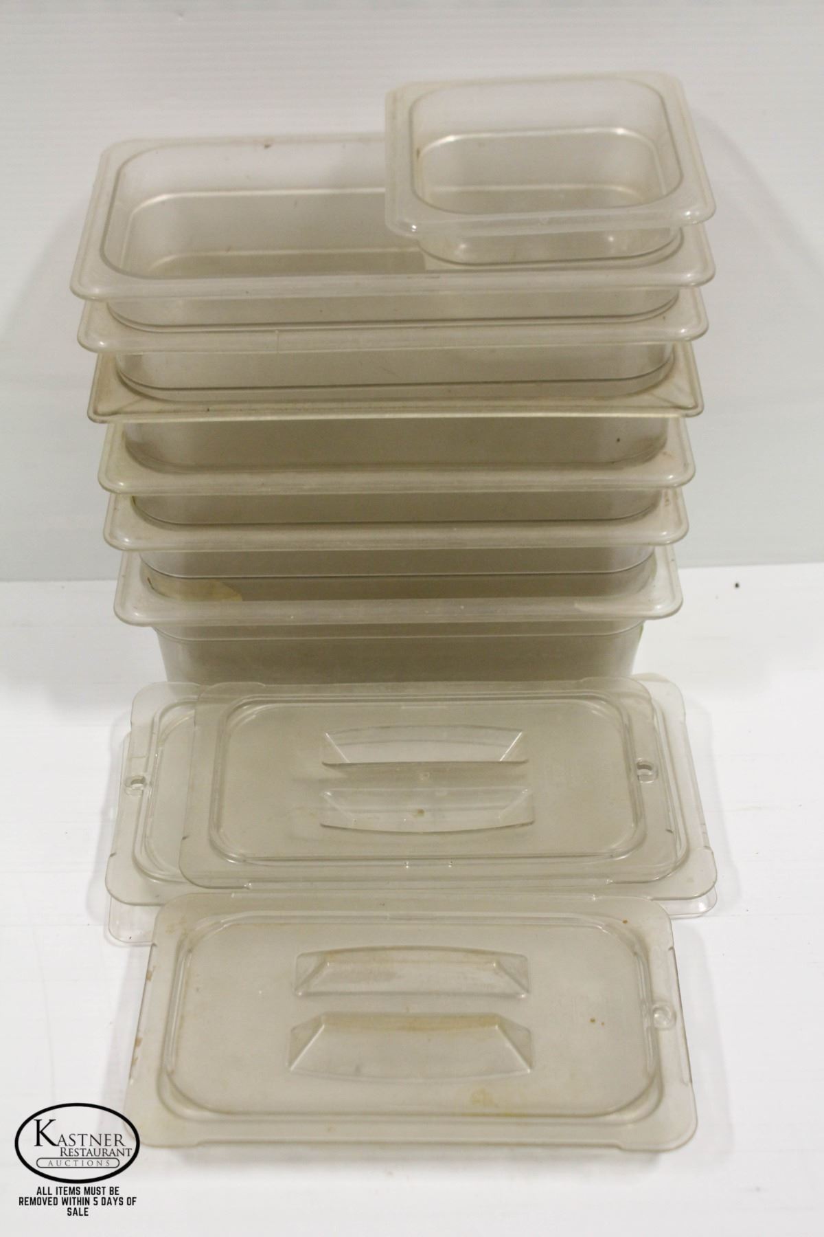 SEVEN 1/3 SIZE POLYCARB INSERTS W/ 5 LIDS