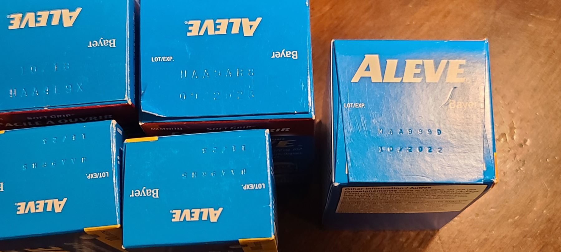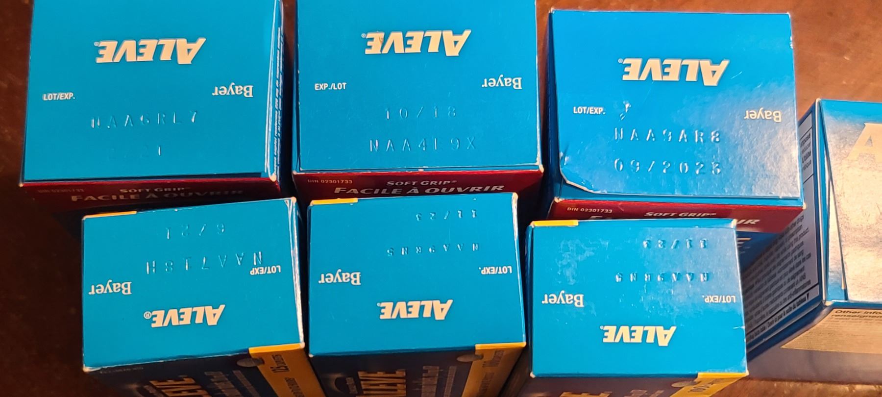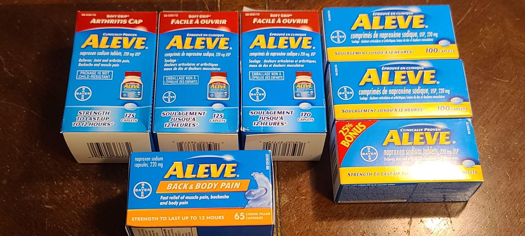 SEVEN BOTTLES OF SEALED ALEVE TABLETS EXPIRED - USE AT OWN RISK