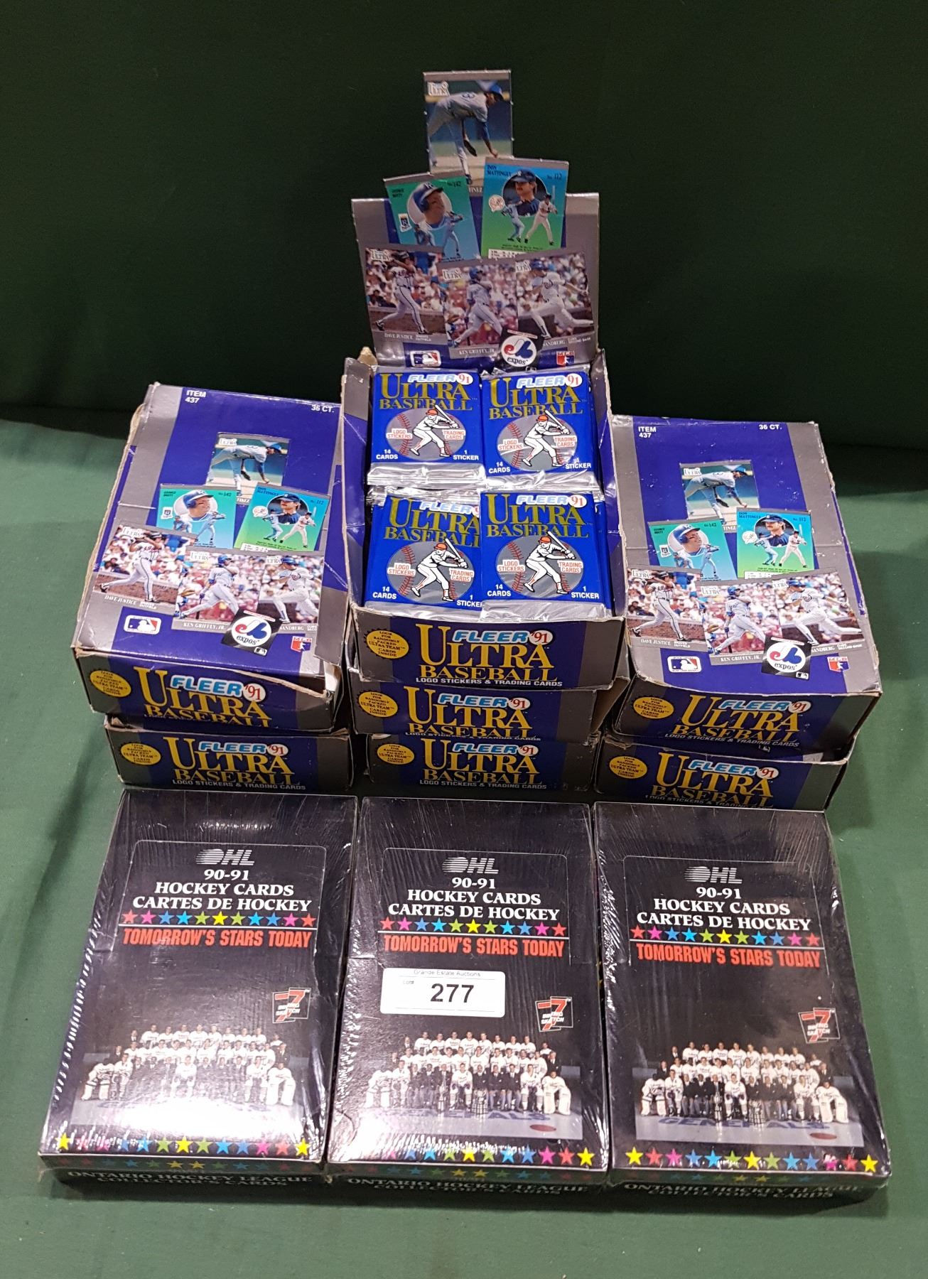 SEVEN CASES 1991 FLEER BASEBALL CARDS & 3 NOS CASES 1990 HOCKEY CARDS