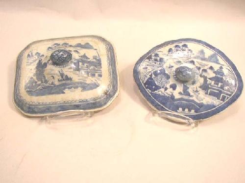 SEVEN CHINESE EXPORT PORCELAIN TUREEN AND DISH LIDS; Canton and Nanking patterns, of varying shapes from 6"d to 10"l