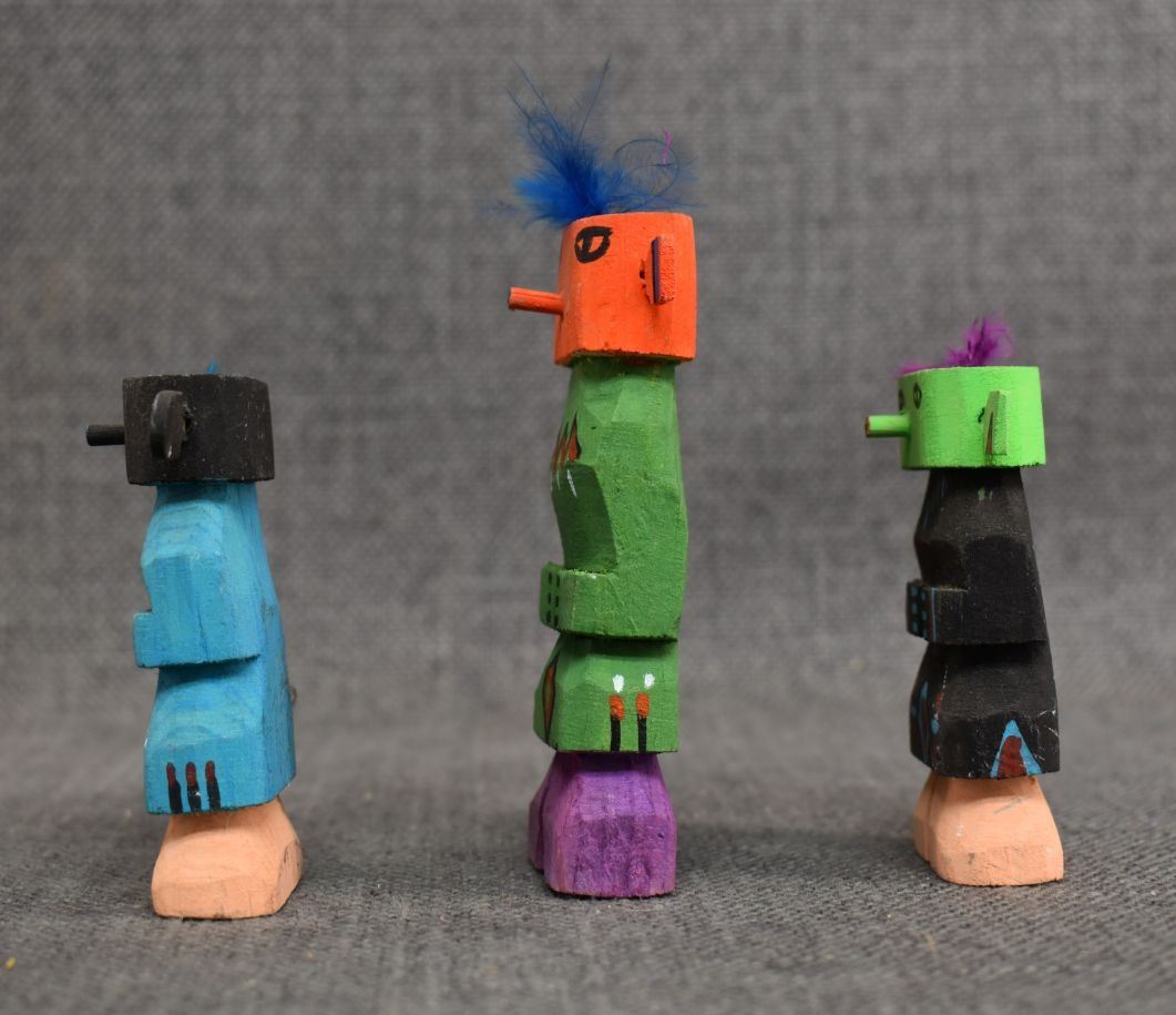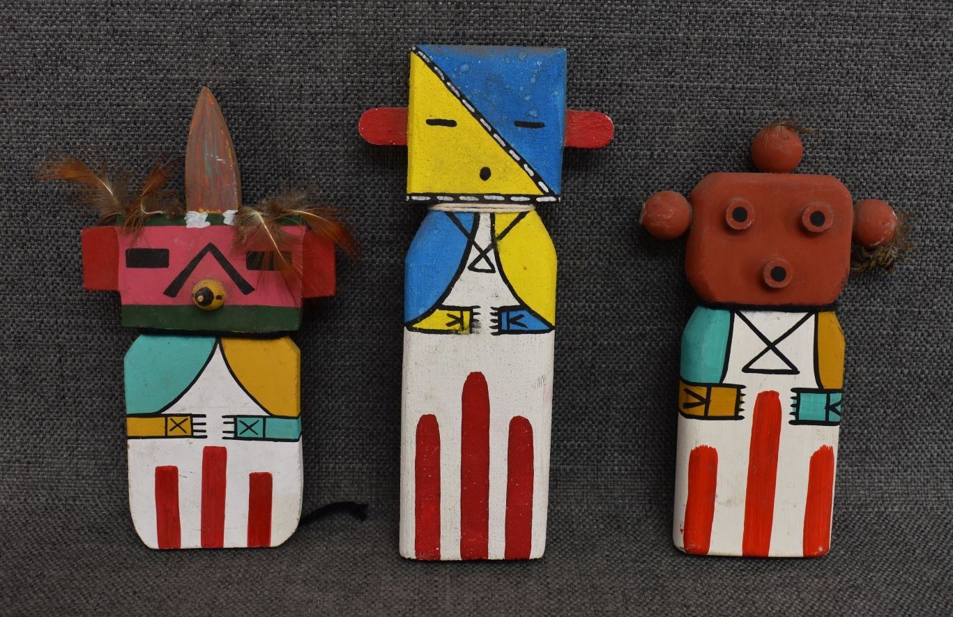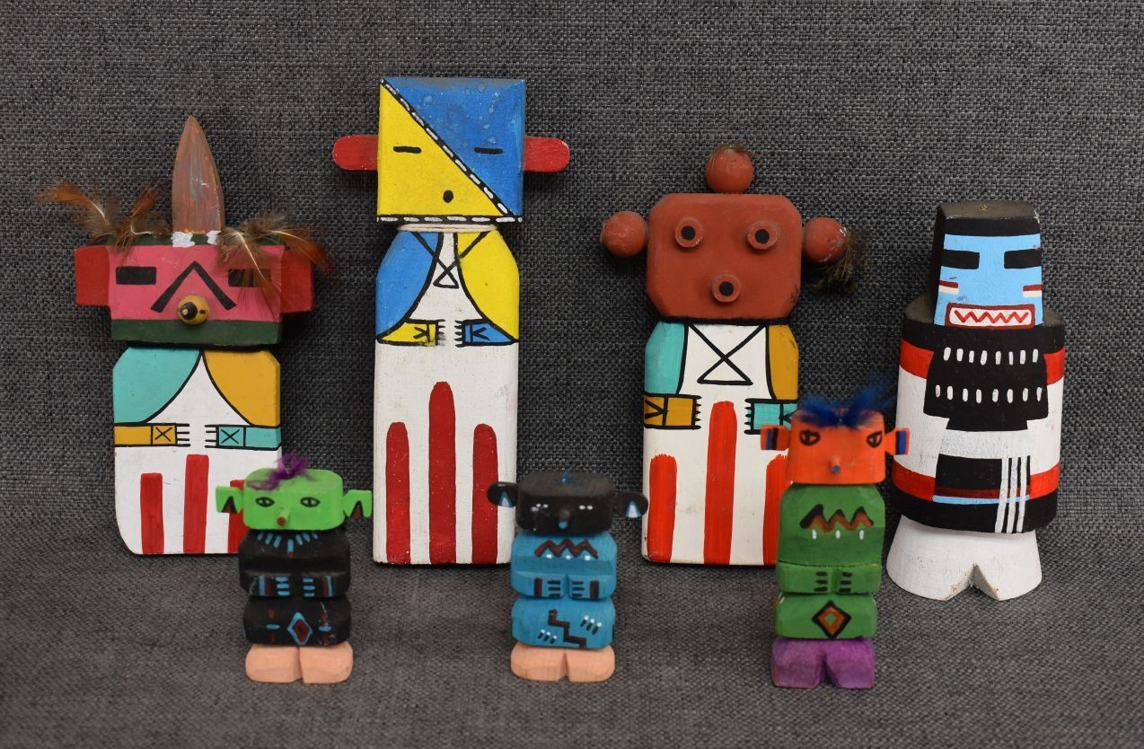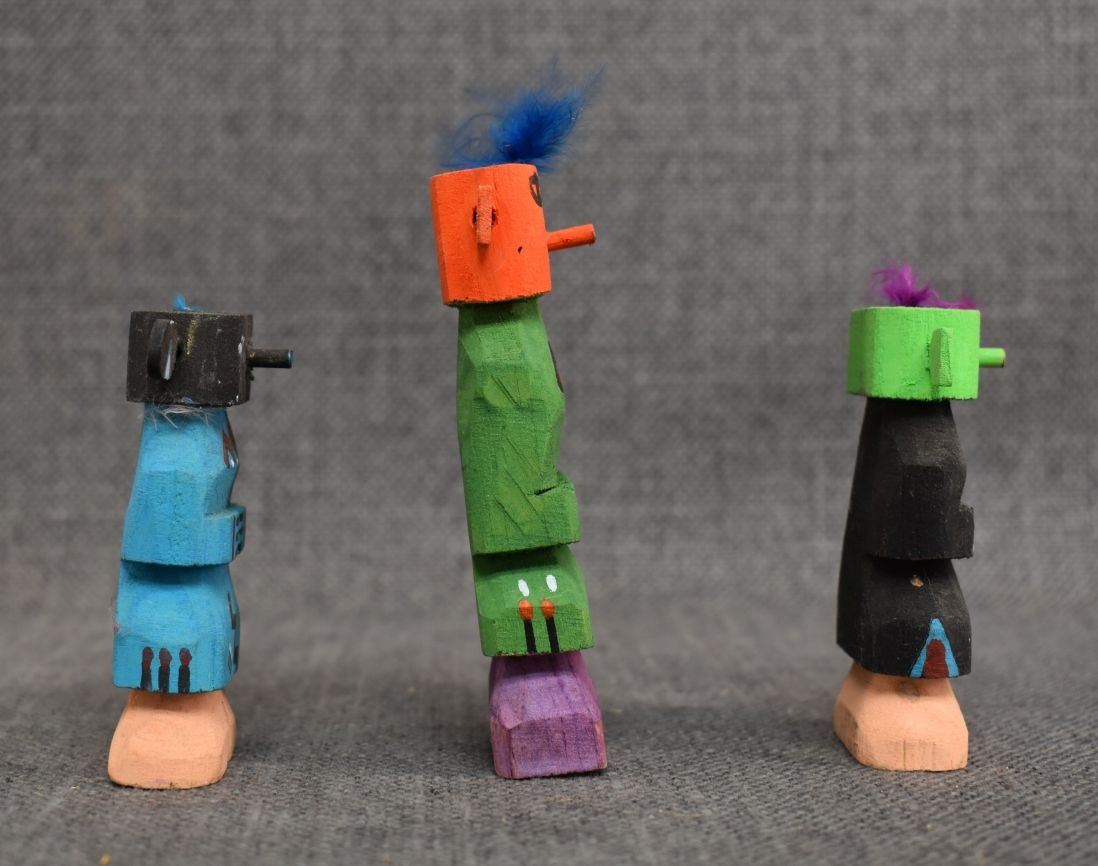 vintage Navajo Indian hand made and painted wood largest 8" tall