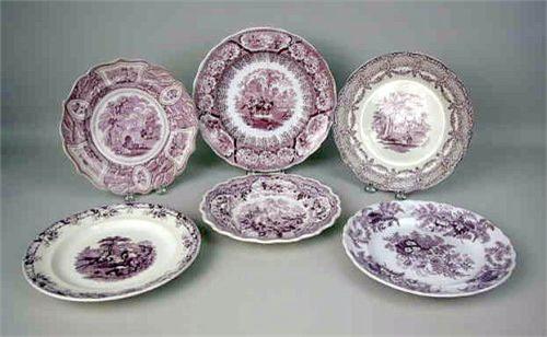 Comprising a rimmed soup plate, stamped Arabian Sketches, Arab`s Halting, W.H., wear, 10"dia., a plate stamped Japan Daisy, J. Wedgwood, crazing, wear, 9 1/4"dia., two plates stamped Valencia, one with bottom rim repair, wear, the other with some undersid