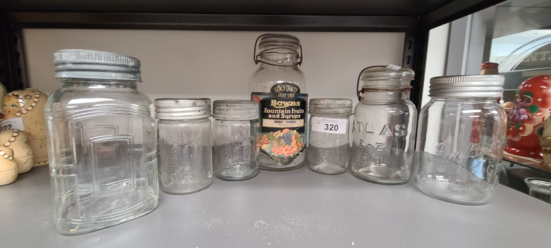 SEVEN VINTAGE CROWN, ATLAS, IMPROVED GLASS SEALER JARS