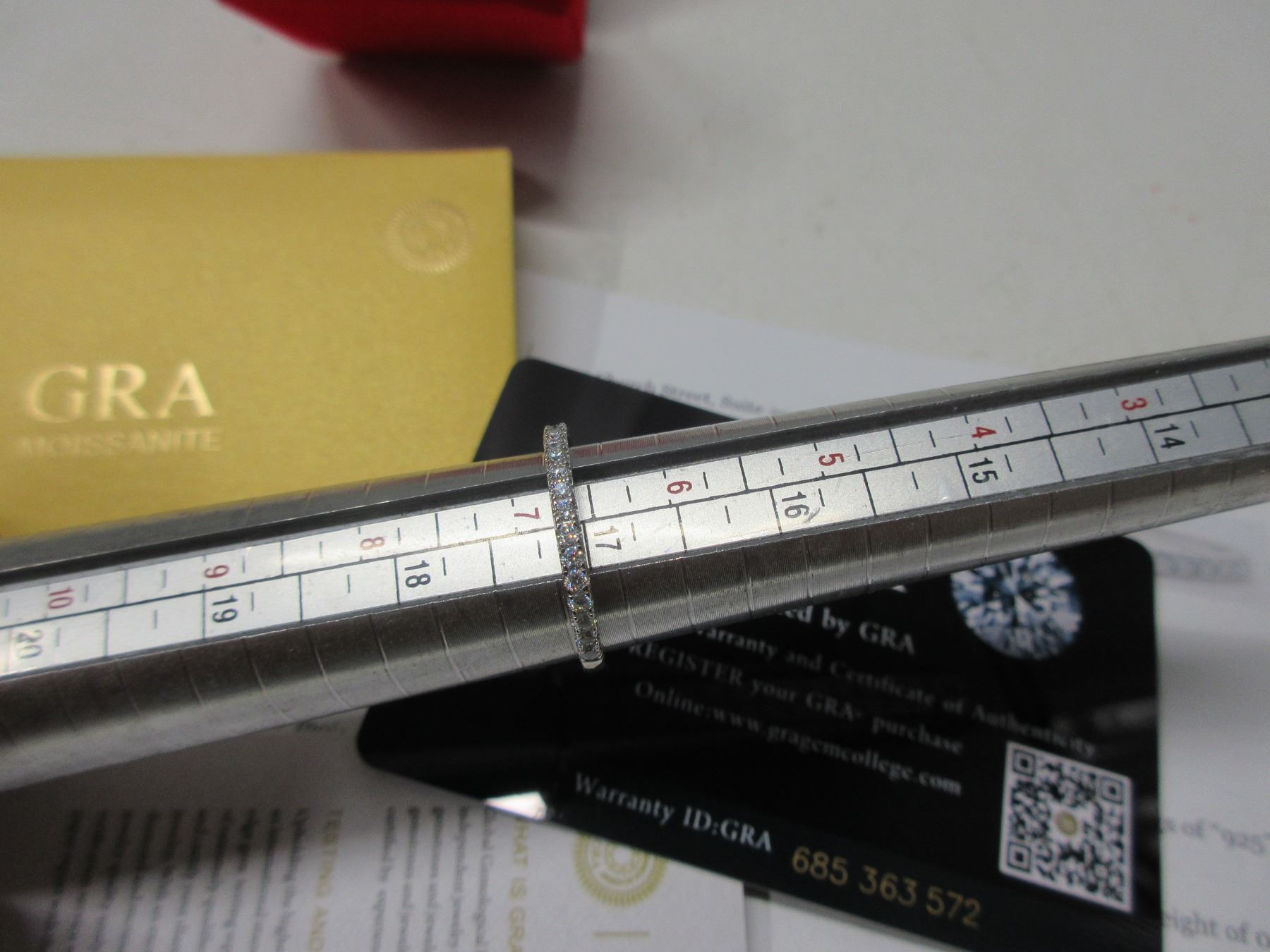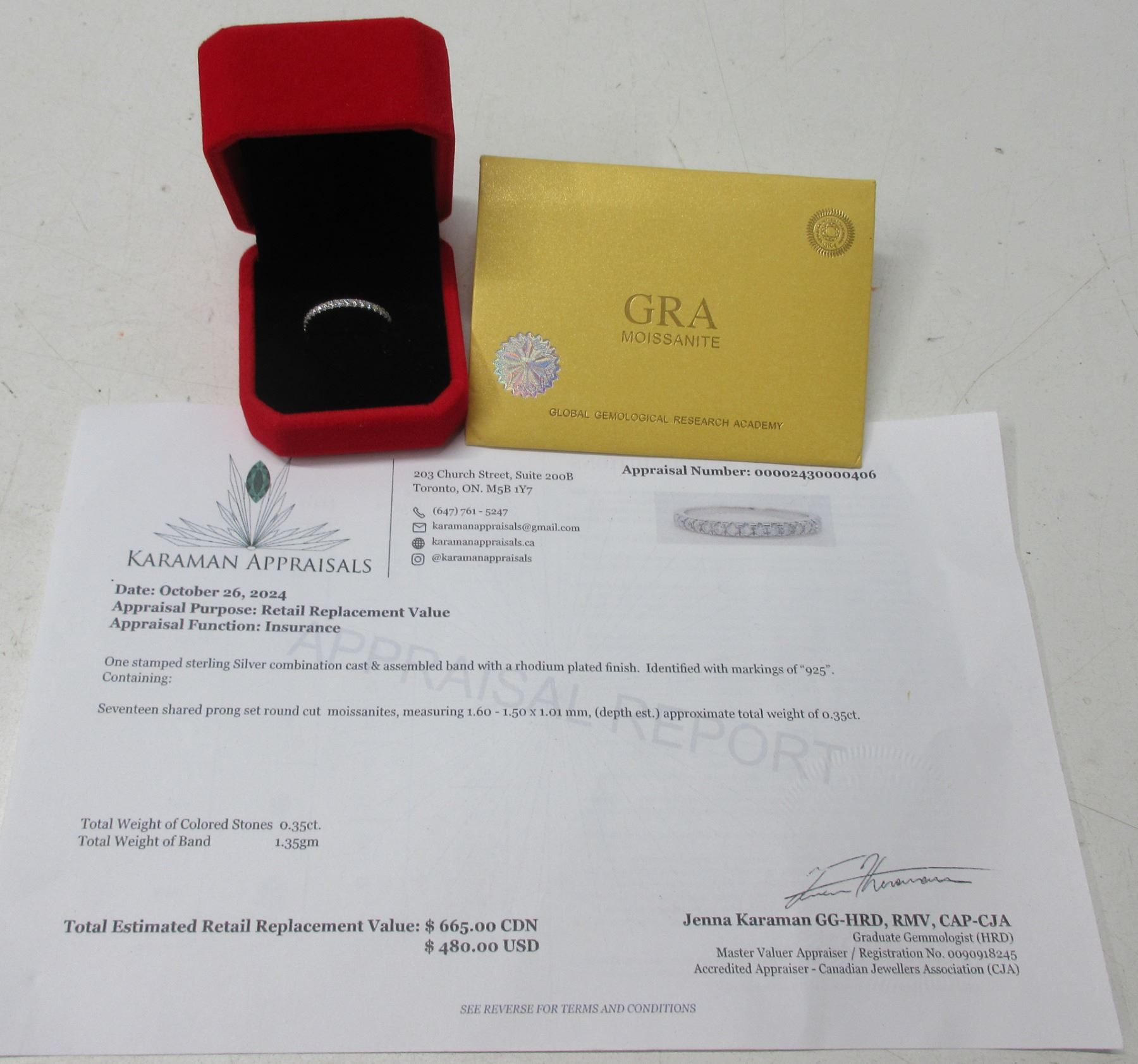 SEVENTEEN GRA CERTIFIED ROUND BRILLIANT CUT MOISSANITE STONES VVS D COLOR SET IN WEDDING RING STYLE SET IN 925 SILVER RING SIZE 6.5 RETAIL VALUE $665.00