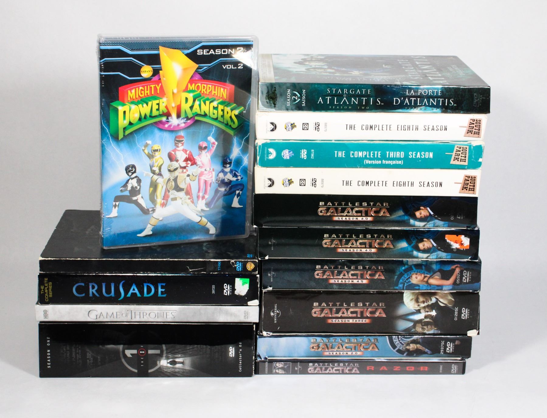 BATTLESTAR GALACTICA, CRUSADE, GAME OF THRONES, ROBOT CHICKEN, STARGATE ATLANTIS, POWER RANGERS (SEALED)