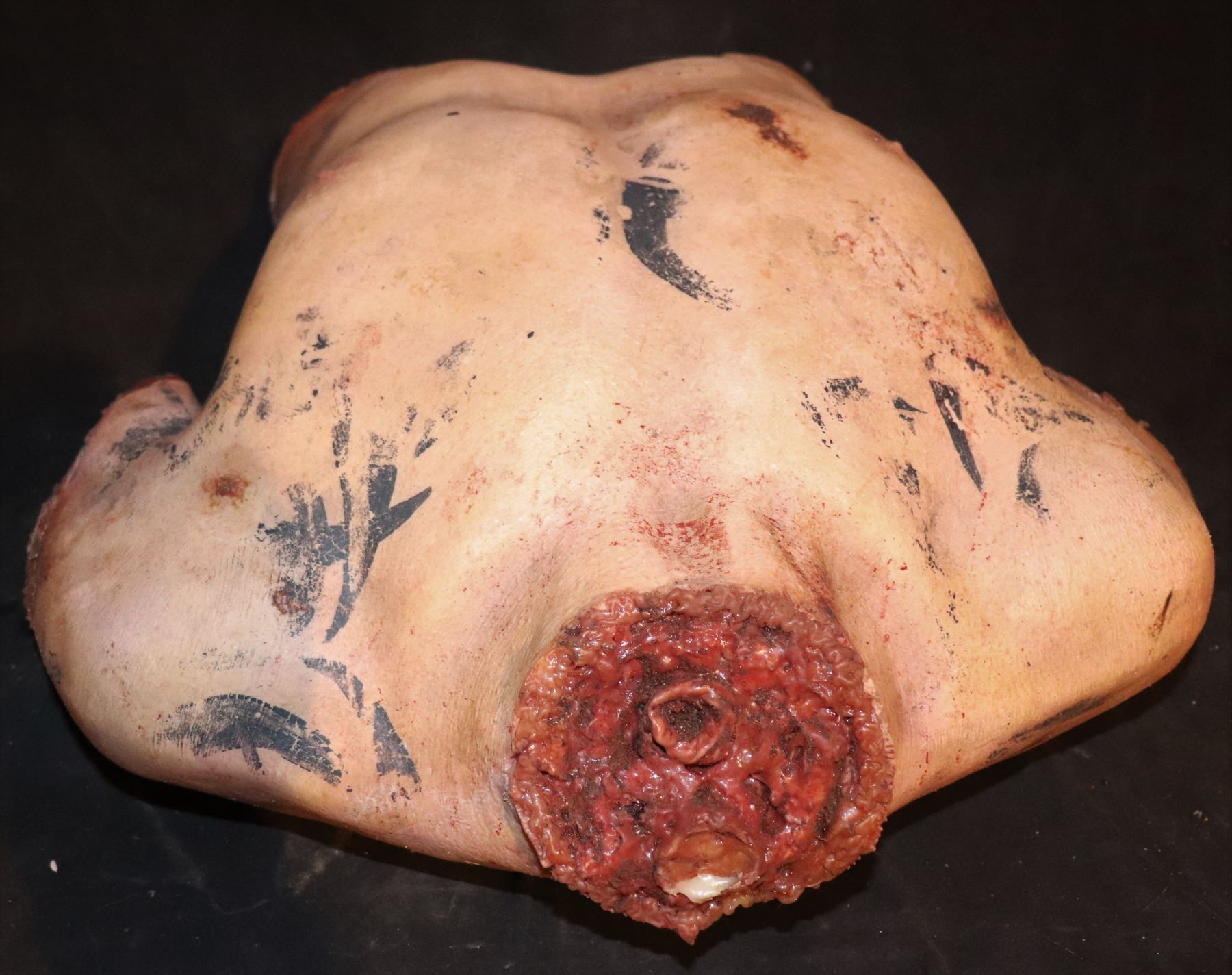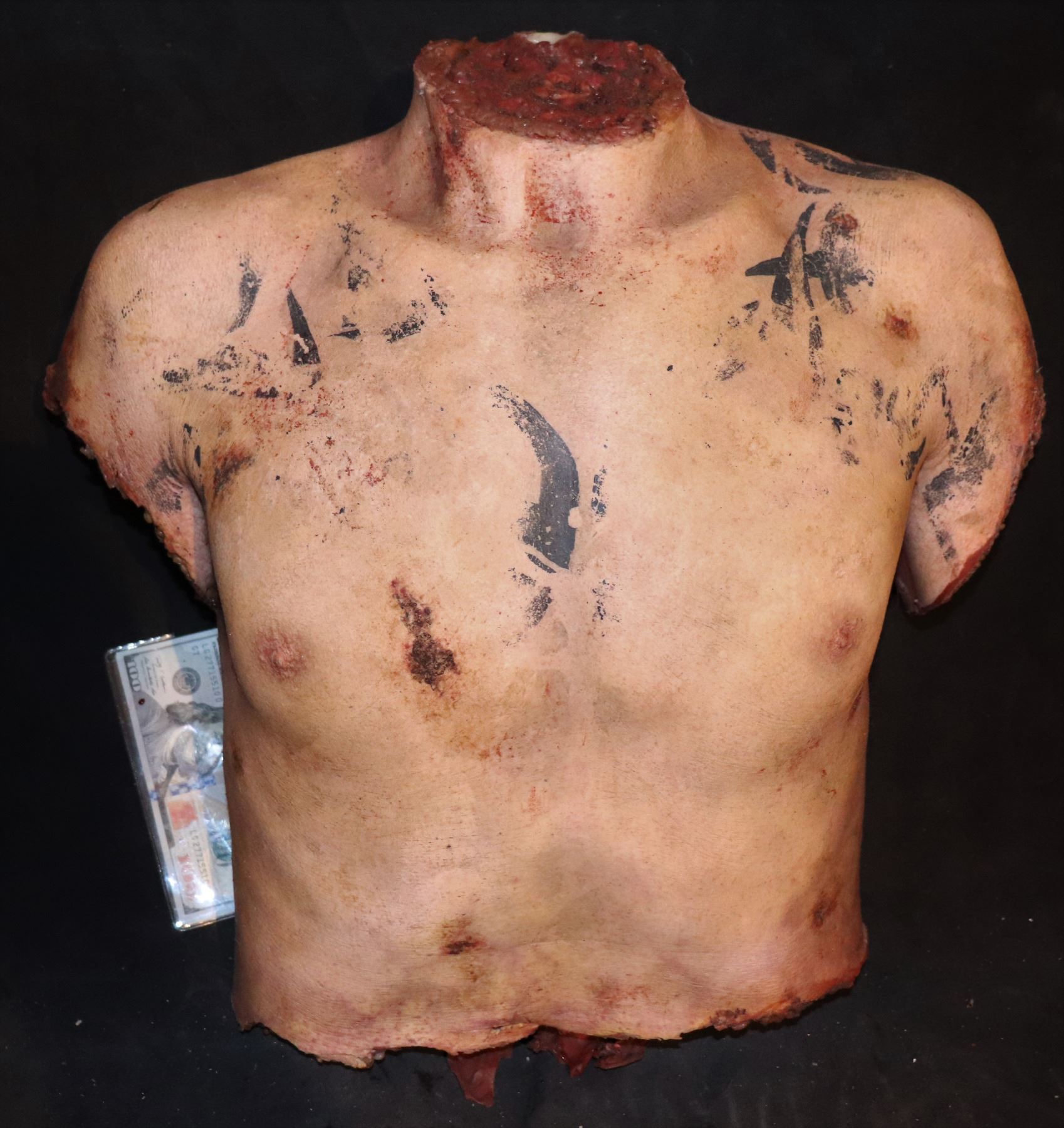 SEVERED BLOODY DRAWN AND QUARTERED TORSO WITH EMPTY CAVITY KEEPER QUALITY GORE!