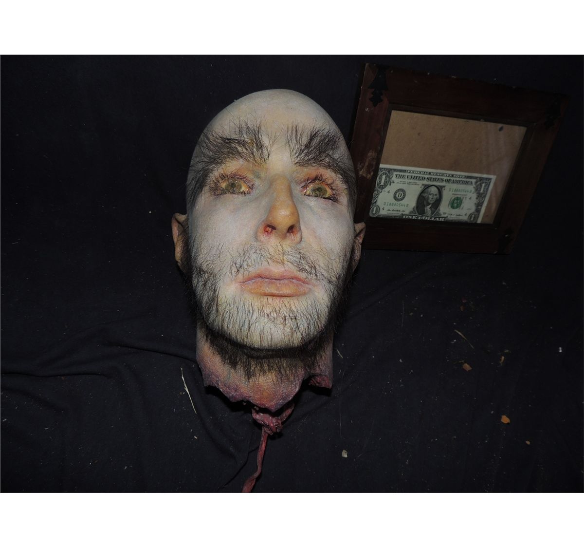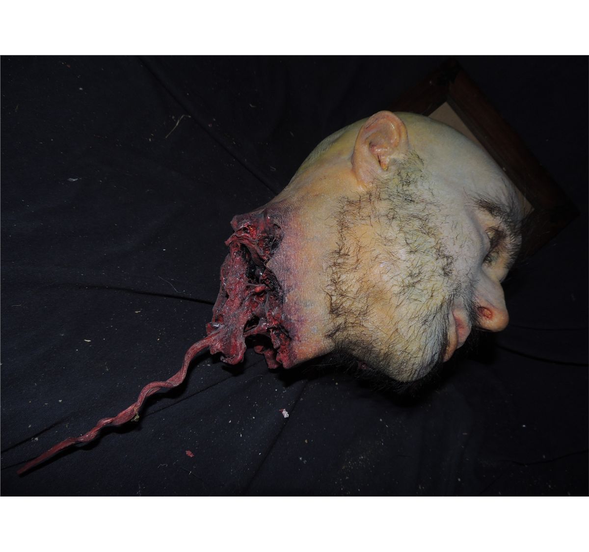 Offered here is a very cool, and durable severed bloody head with hand punched hairs. Cast in durable self skinning urethane, and made to last forever!
