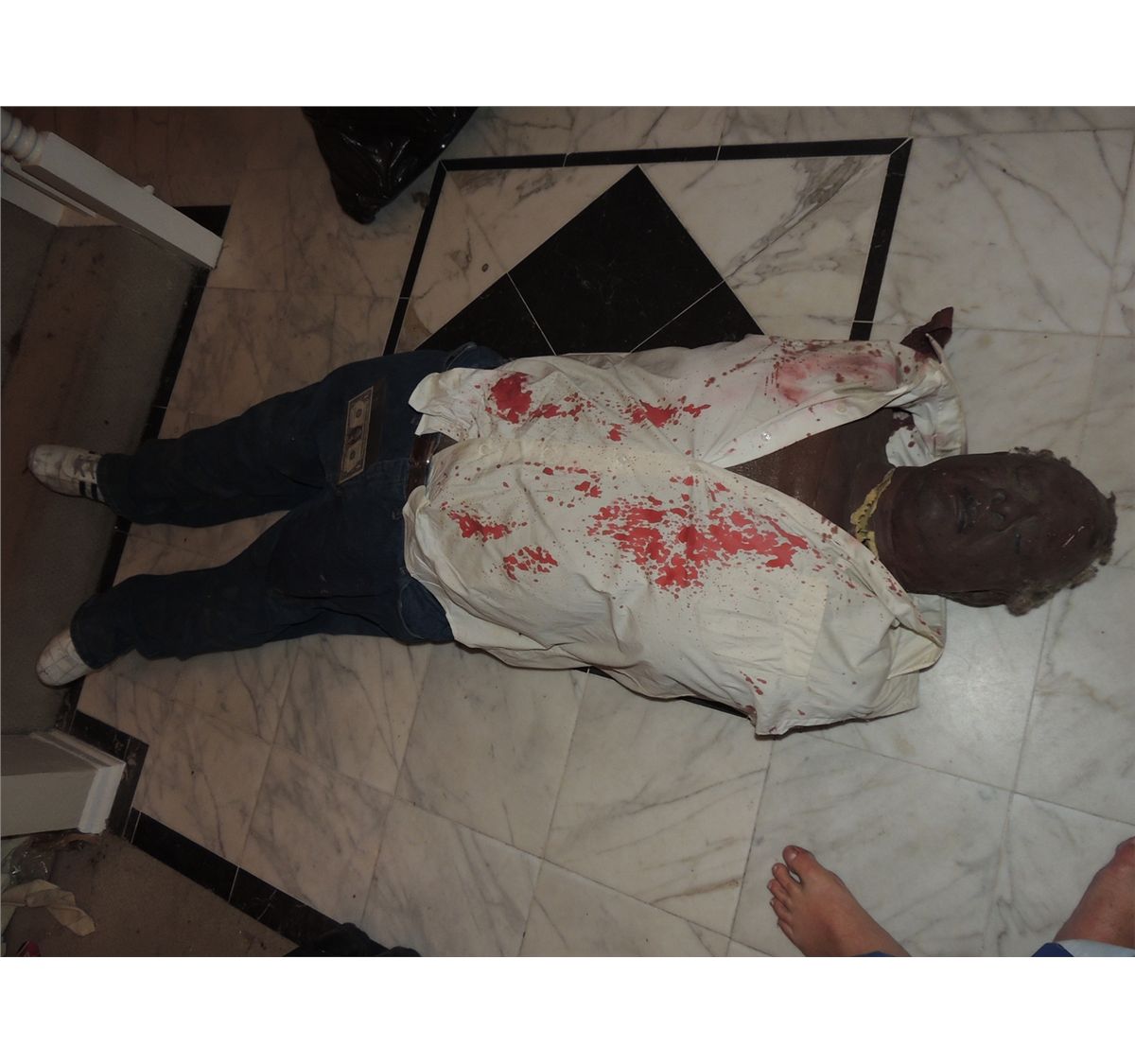 This is a full body corpse with a torn off arm gore. Both arms are missing, and head is loose.