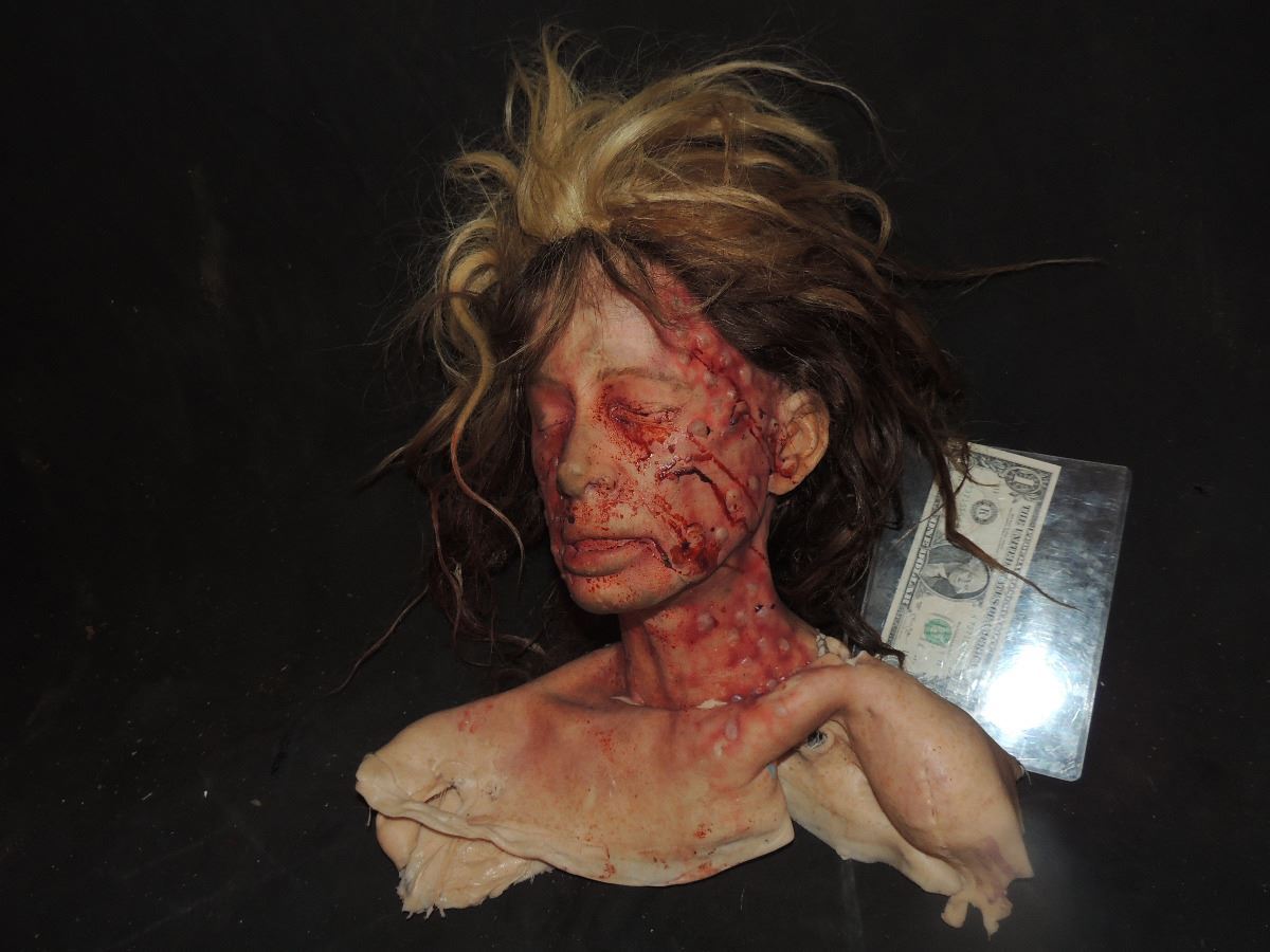 This is one of a plethora of SEVERED SILICONE HEADS I have saved up over the past year for HALLOWEEN HAUNTERS!