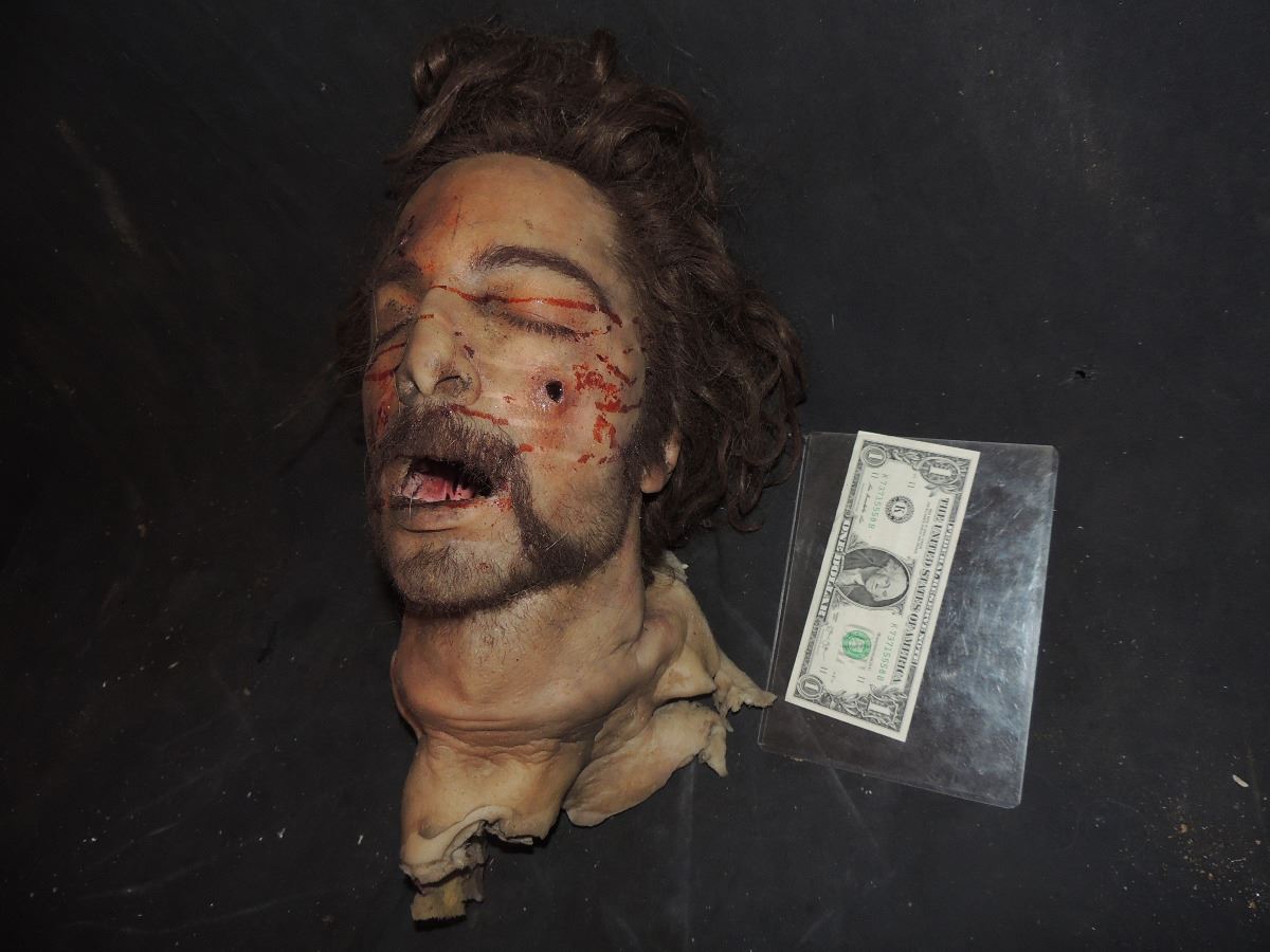 This is one of a plethora of SEVERED SILICONE HEADS I have saved up over the past year for HALLOWEEN HAUNTERS!