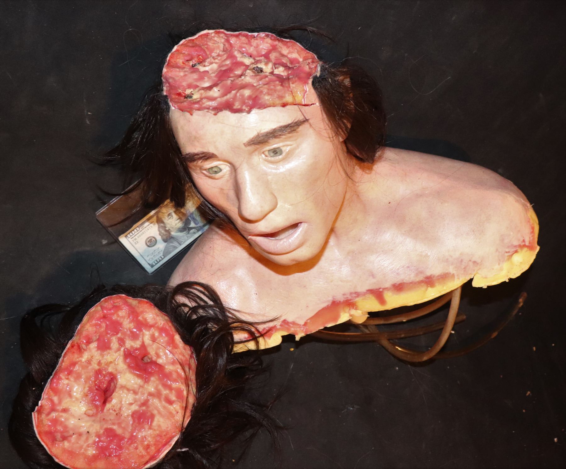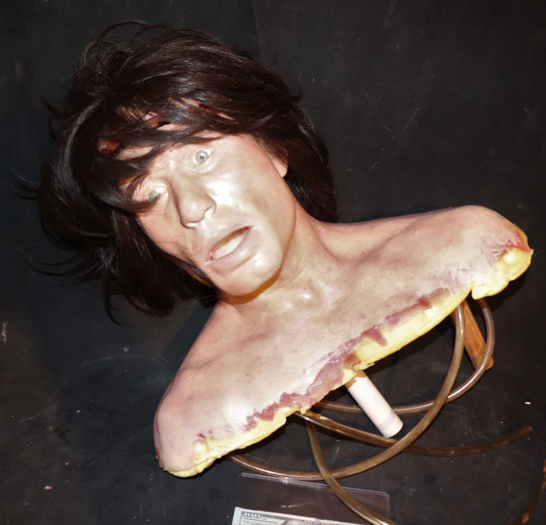 SEVERED SCALP SILICONE HEAD FULL BUST WITH GORE AND BLOOD RIGS INTACT