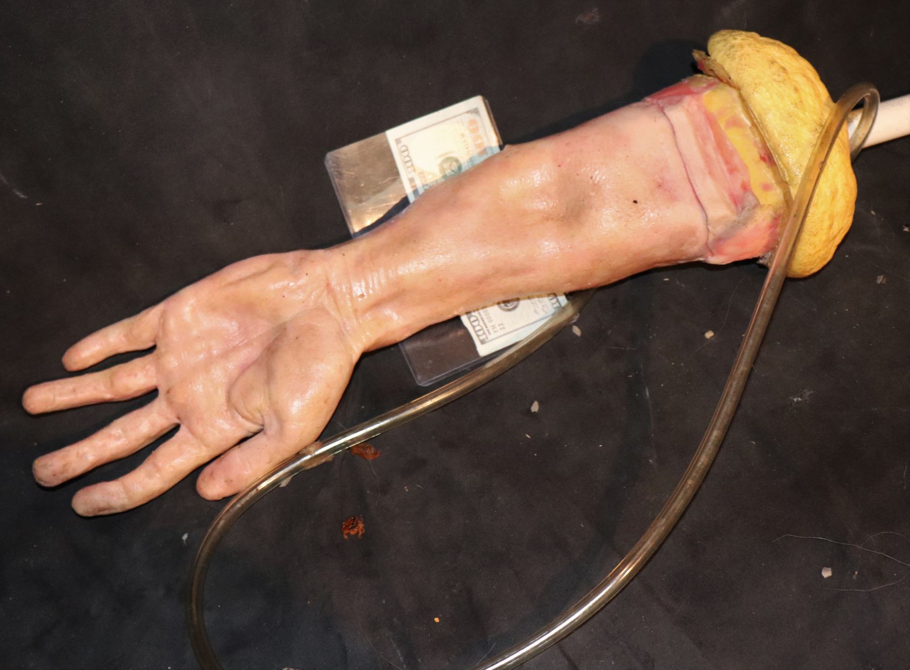 SEVERED SILICONE BROKEN ARM WITH BLOOD RIG