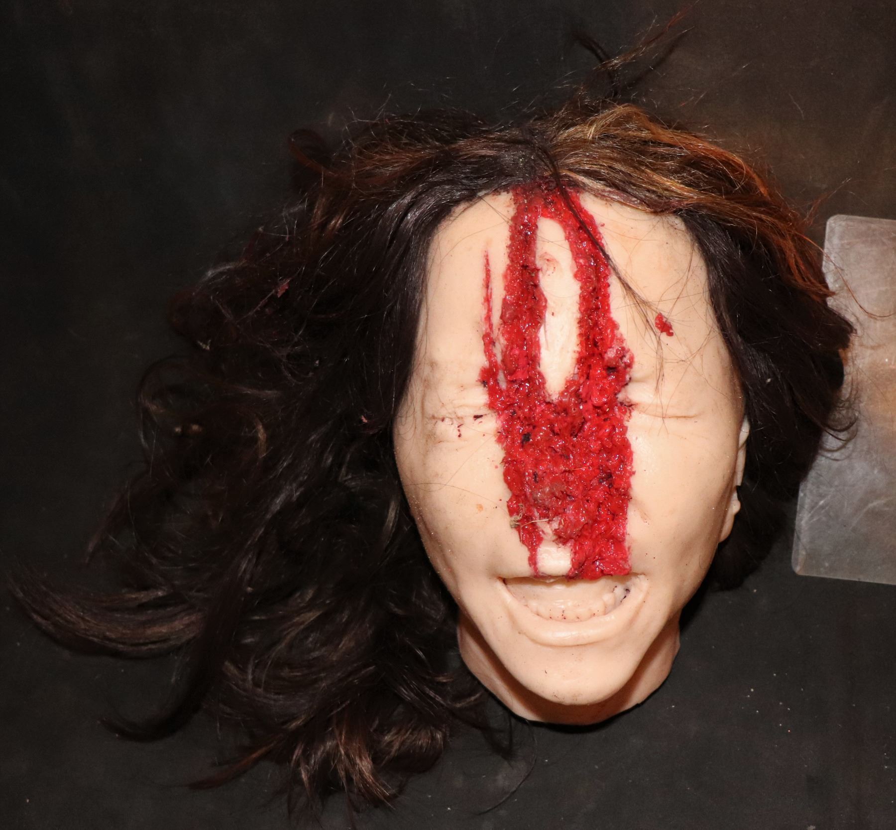 SEVERED SILICONE FEMALE HEAD WITH HAIR AND GORE!