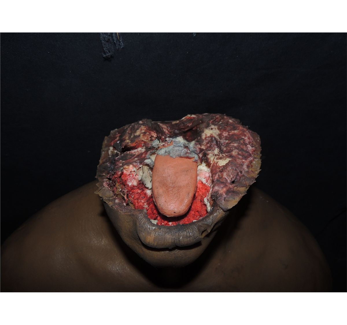 Excellent silicone severed head bust with jaw, tongue, and gore intact.