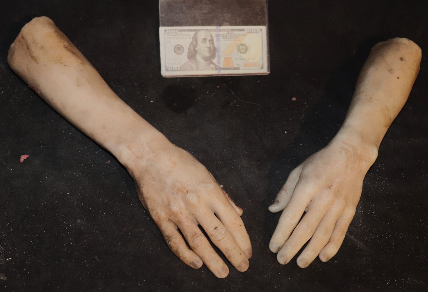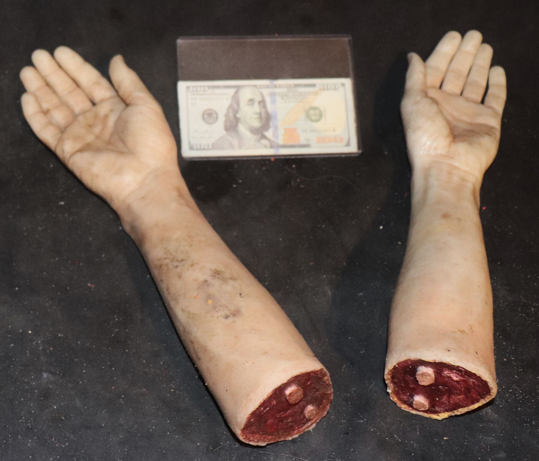 SEVERED SILICONE PAIR OF FEMALE ARMS WITH GORE AT STUBS!