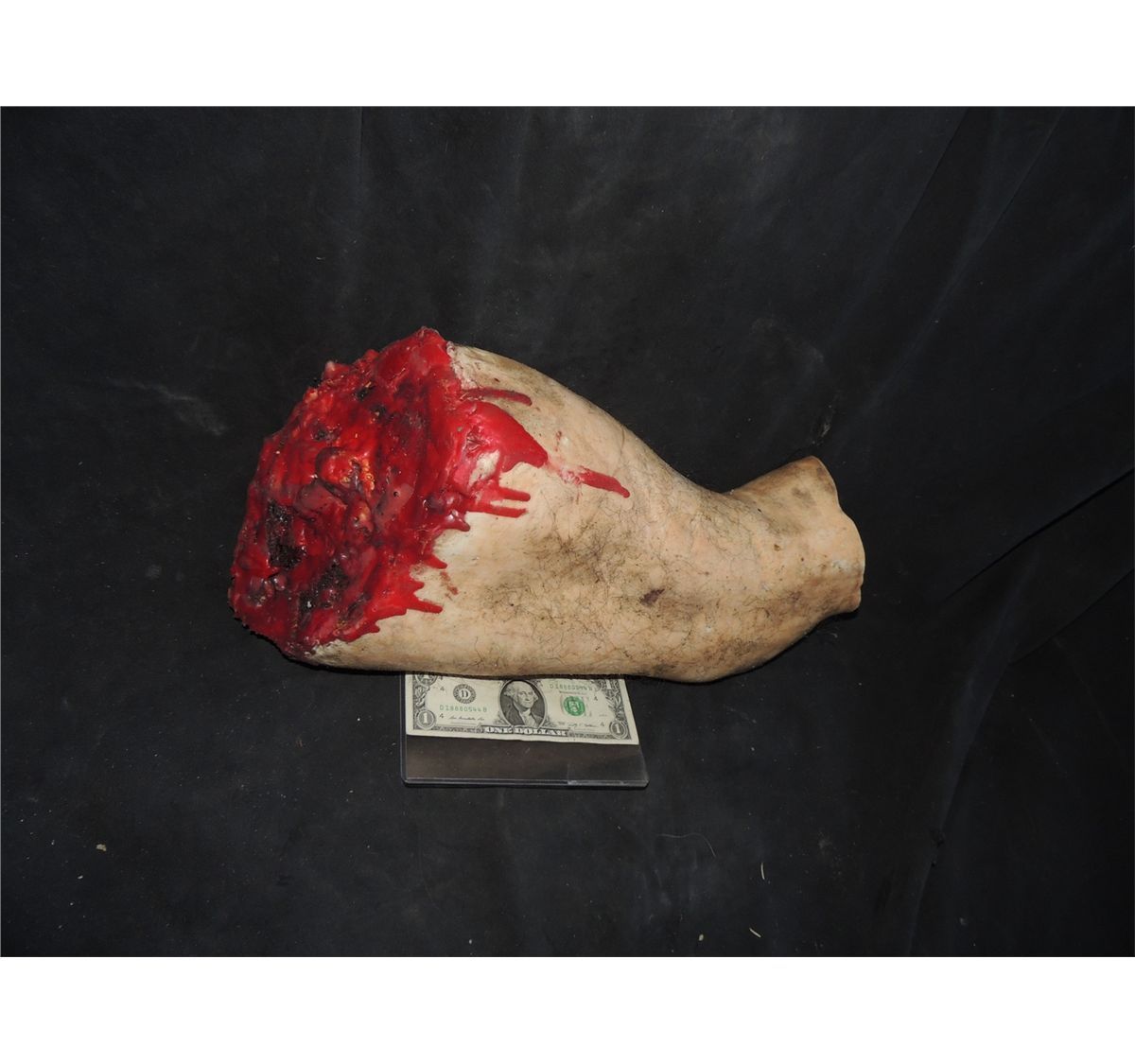 This is a severed silicone thigh with gore.