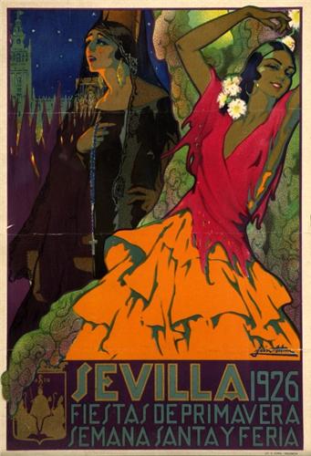 ASTRUC, LEON. SEVILLA FIESTAS DE PRIMAVERA. 1926. 40x27cm. (15,8x10,6in.). Litografía. B+. Dos pliegues horizontales.