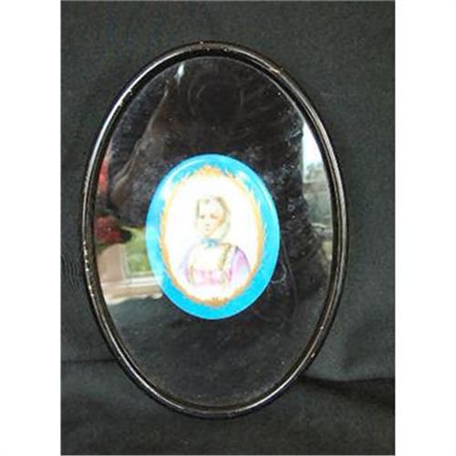 Sevres type porcelain plaque, hand painted and mounted in a black wooden frame, dating from around 1880. Small scratches to the painted finish on the frame otherwise in good condition. frame 9.25 ins x 6.25 ins , plaque 4 ins x 3.1 ins .