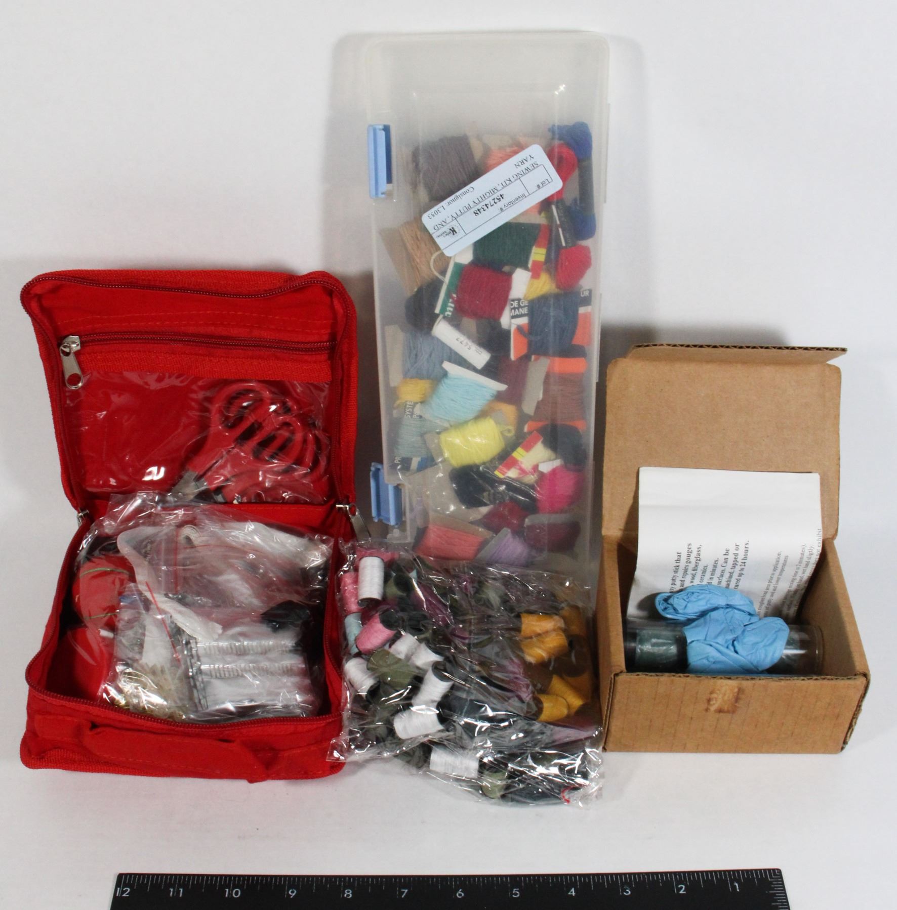 SEWING KIT, MIGHTY PUTTY, AND YARN