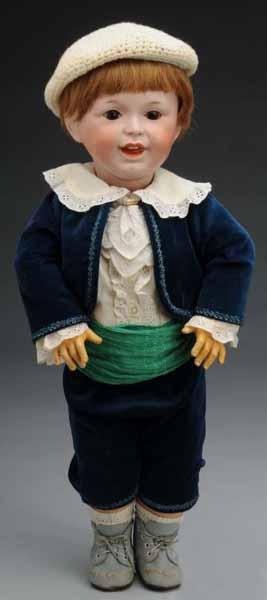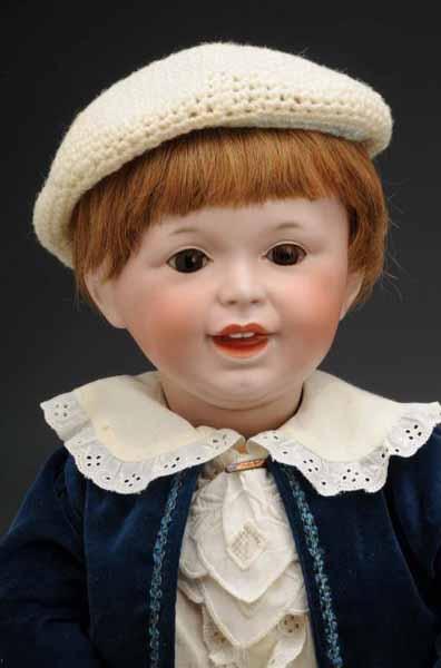 Description France, Ca. 1910. Incised "SFBJ 236 Paris". Bisque socket head with stationary brown eyes, real upper eyelashes, painted lower lashes, smiling face with open/closed mouth, chin dimple, replaced blonde wig. Original French jointed composition toddler body (repainted hands). Redressed. Condition (Very Good). Size 23" T.