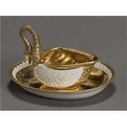 SFvres-Type Parcel Matte Gilt Biscuit 'Swan' Sauce Boat and Stand