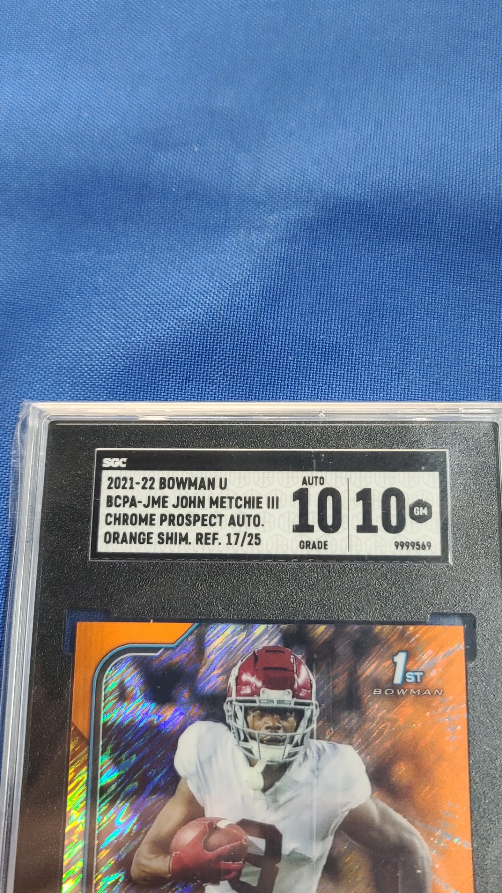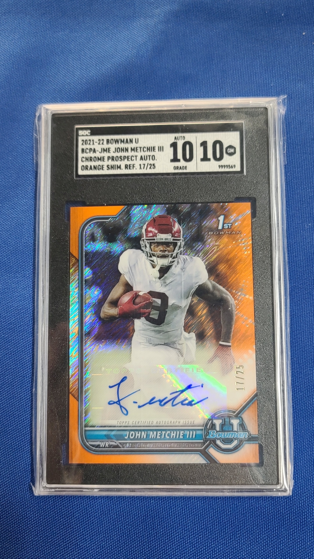 SGC 2021-22 Bowman U BCPA-JME John Metchie III Chrome Prospect Auto Orange Shim Ref 17/25 Graded 10