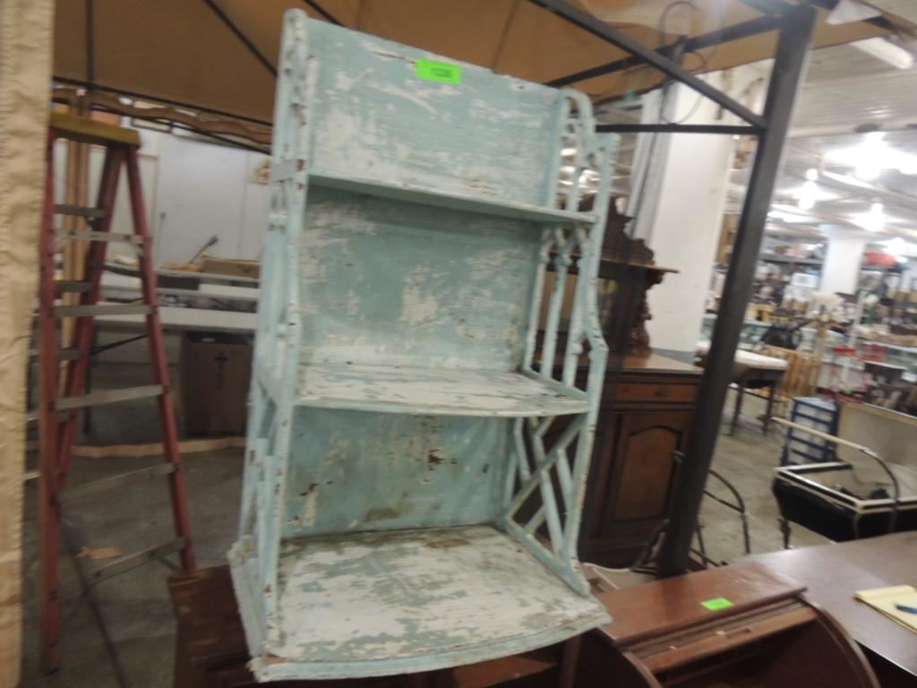 SHABBY CHIC DECORATIVE 3 TIER WALL SHELF, SCROLL WORK ON SIDES, DECORATIVE SHABBY CHIC AS SHOWN SEE PHOTO FOR MORE DETAILS.