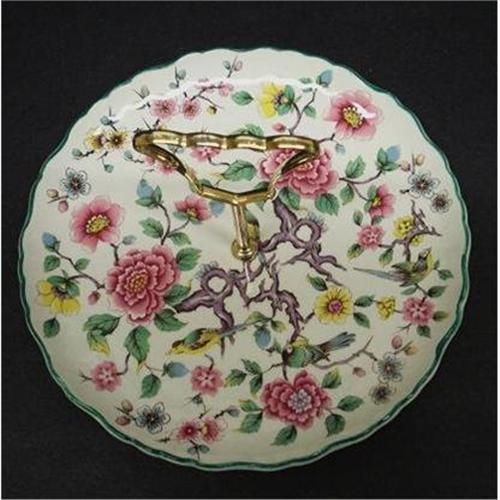 BEAUTIFUL 1 TIER WITH POST CAKE SERVER, MADE BY JAMES KENT , OLD FOLEY, STAFFORDSHIRE, ENGLAND. DEPICTING GLORIOUS ROSES, FLOWERS AND BIRDS IN SPECTACULAR COLORS,IN EXCELLENT CONDITION - IT STANDS ABOUT 6" HIGH,PLATTER MEASURES ABOUT 8 3/4" IN DIAM.US BUYER TO PAY 8.00 FOR SHIPPING PLUS INSURANCE.THANKS.