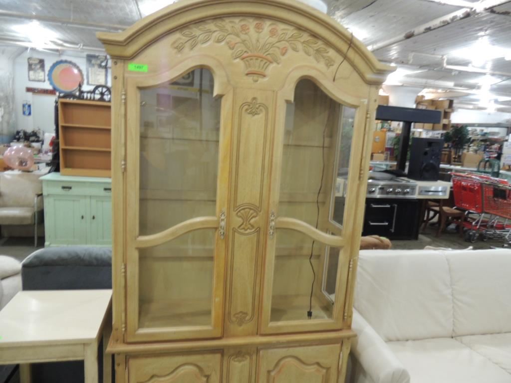 GLASS DOORS DISPLAY CABINET, DECORATIVE VINTAGE CREAM WOODEN SHABBY CHIC CABINET AS SHOWN SEE PHOTO FOR MORE DETIALS.